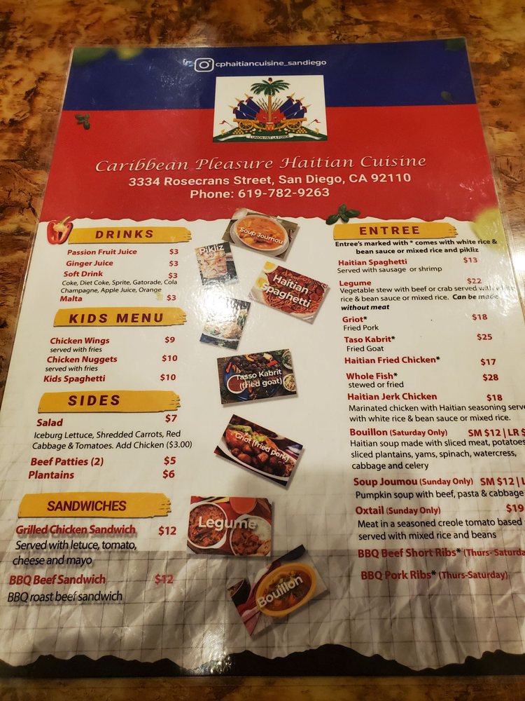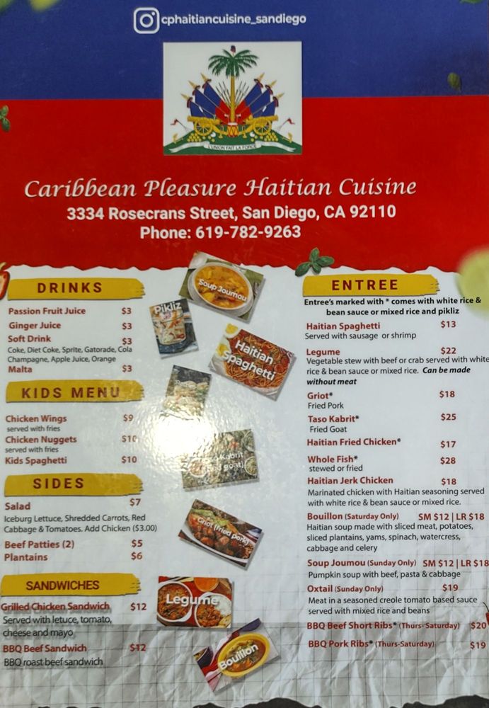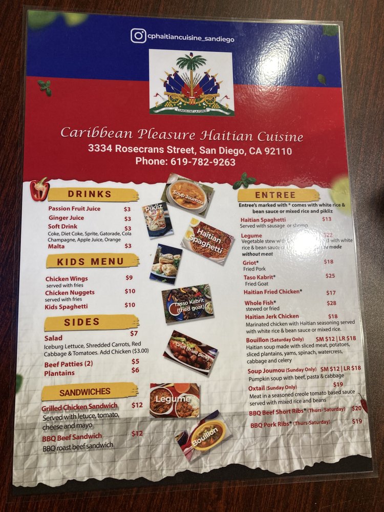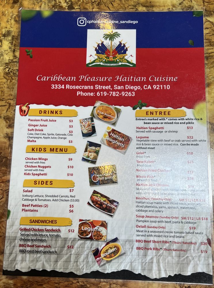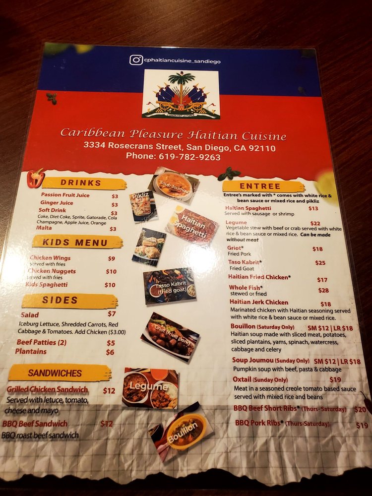 Welcome to Caribbean Pleasure, a delightful Caribbean restaurant nestled in San Diego's vibrant culinary scene. Located at 3334 Rosecrans St, this cozy and inviting eatery specializes in authentic Haitian cuisine that bursts with flavor.